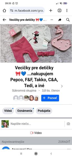 @deedol ja potrebujem 80/86 a teda neviem nič nájsť. Už týždeň prechádzam bazár. Potrebujem viac kusov, lebo dcéra nosntop grcká, prezliekam xy krát do dňa . Máme nakúpené nové, ale to mi je škoda dávať na doma, lebo sa to častým praním dosť ničí a potom keď idem k lekárovi alebo kde tak neviem čo jej obliecť lebo všetko už vyšedivené, na doma môže drať aj nosené, ale zas nie deravé a kadejaké fľakaté.
