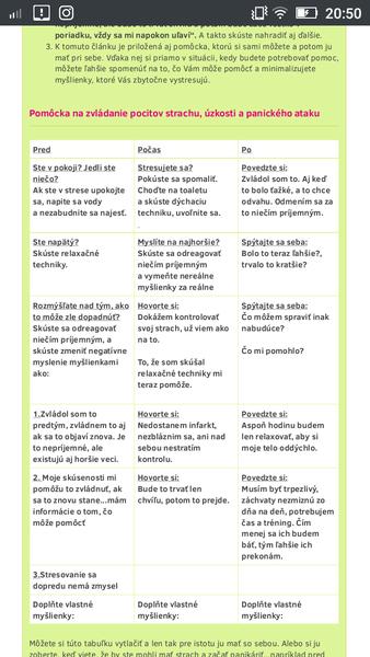K tomuto článku je priložená aj pomôcka, ktorú si sami môžete a potom ju mať pri sebe. Vďaka nej si priamo v situácii, kedy budete potrebovať pomoc, môžete ľahšie spomenúť na to, čo Vám môže pomôcť a minimalizujete myšlienky, ktoré Vás zbytočne vystresujú.