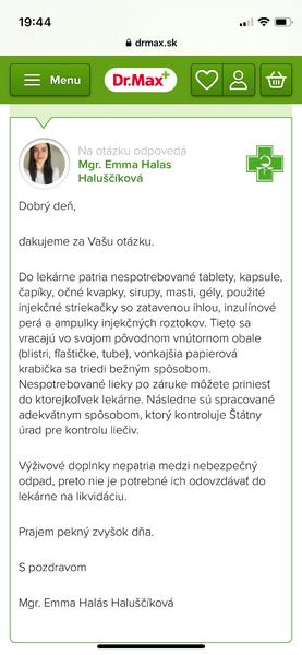 Prlsim vás je tu niekto z lekárne? Bola som odniesť do dr max zvysne vitamíny ako kyselina listová, vita c, l arginin, magnerot atd a nevzali mi to. Ze iba lieky berú. Takže to mám proste vyhodiť do kontajnera?