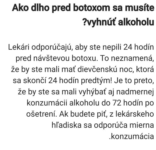 ajtra idem na botox prvýkrát darček na narodeniny a dnes som pila 2 poháre vína,vraj sa to nemôže? Skúsenosti?