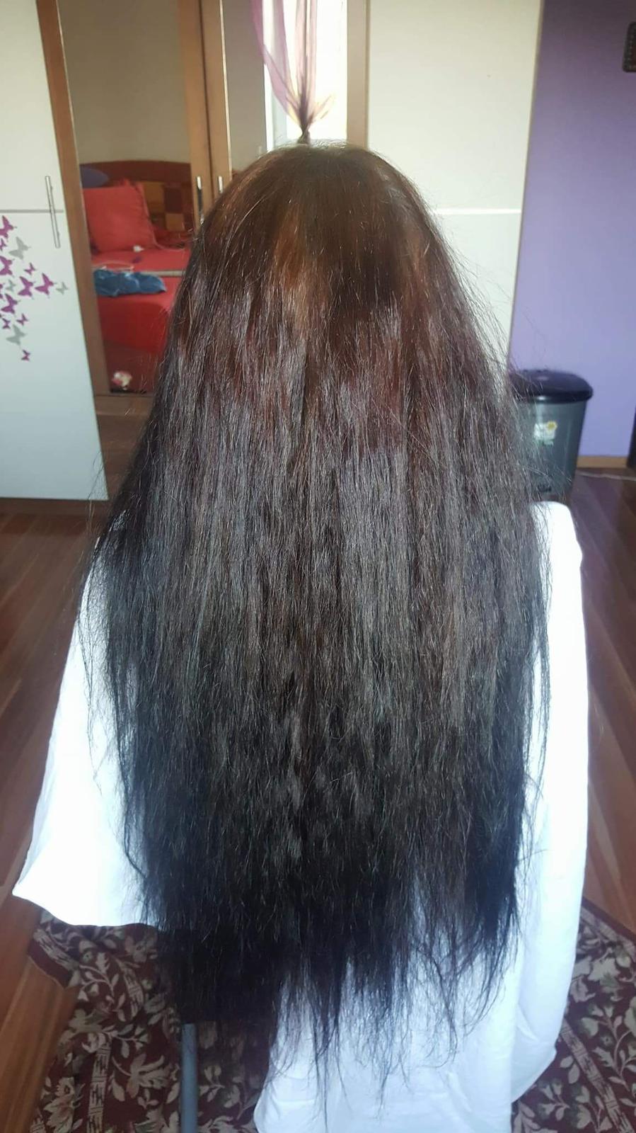 Na prvé použitie na takto dlhé vlasy by som isto minula aspoň 250ml.