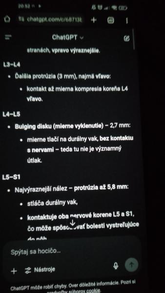 @anonym_autor chrbtica je najmä o cvičení (90%) a zvyšných 10 % ostatné rehabilitácie - rôzna fyzikálna terapia. Pri chat gpt musíš kontrolovať čo máš v popise aby netáral, avšak ak ho upozorníš prepíše to a je o 1000 krát lepšie a jasnejšie vysvetlené ako lekár. Ten ti ledva povie jednu vetu, umelá iteligencia ti veľmi veľa ponúkne len sa treba správne pýtať. O chrbtici je tu toho mraky, stačí si prečítať diskusie. Liečba je len a len tvoja snaha.