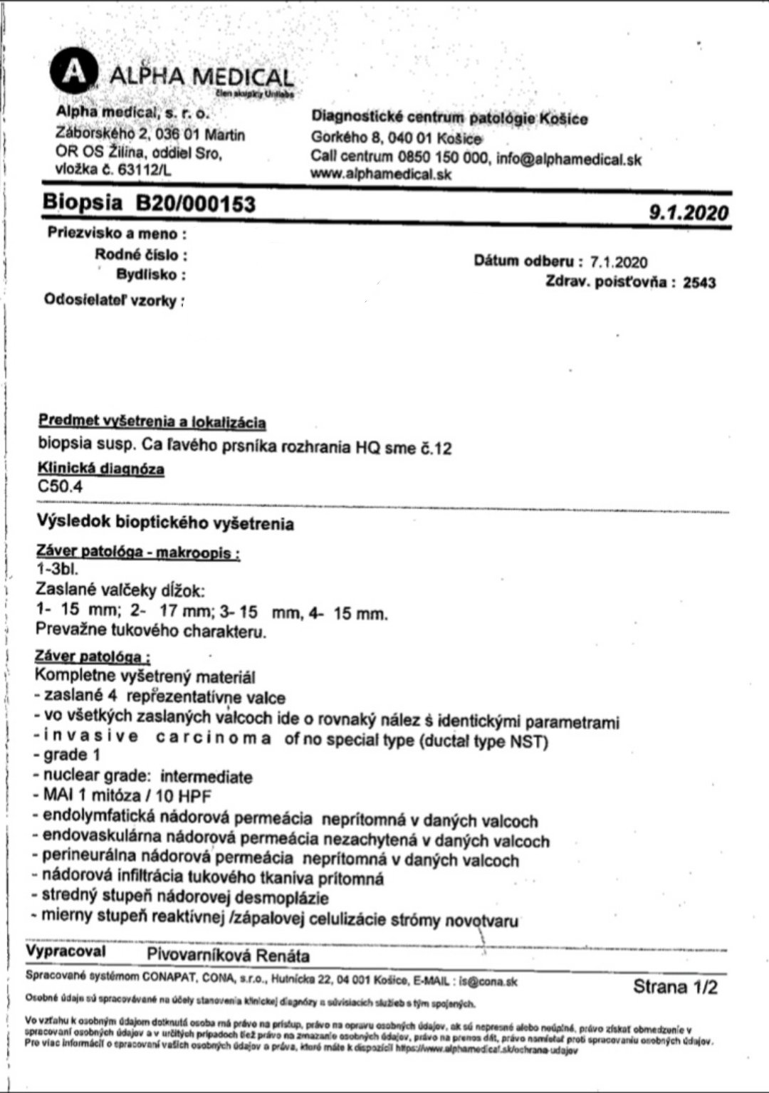 Ahojte, mám 24 rokov, a pred necelými dvoma mesiacmi mi diagnostikovali karcinóm ľavého prsníka. Doktor na chirurgii odporúčal vybrať celú prsnú žľazu, lebo je to istejšie. Keby som chcela prsník ponechať, najskôr by som musela podstúpiť chemo, aby sa nádor zmenšil, ale nezaručil mi, že to pojde. Takže som ani nerozmýšľala. Podstúpila som teda kožu šetriacu mastektómiu (tzn. ostala mi aj koža a bradavka), len som polovičný chlapec 👦