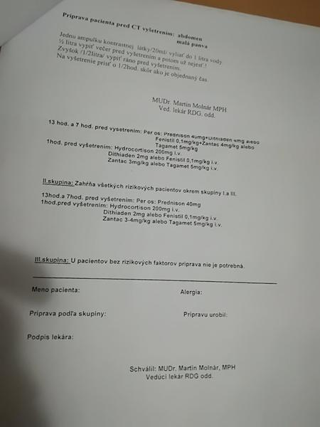 ste niektora alergicka na nejake lieky? ja som dakedy mala miernu koznu reakciu na summamed , tak mi pred CT vysetrenim kazala Prednison a este nieco