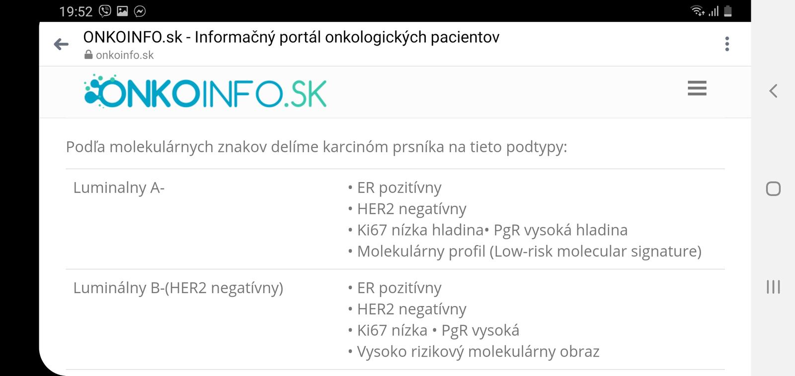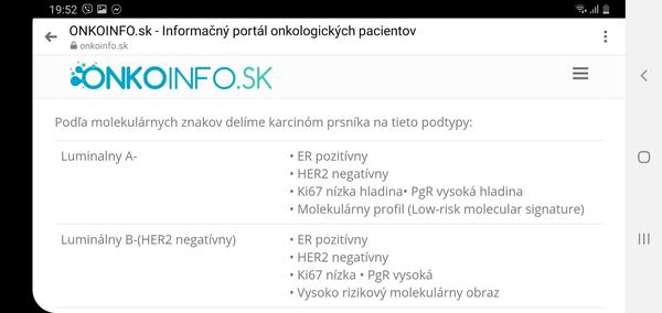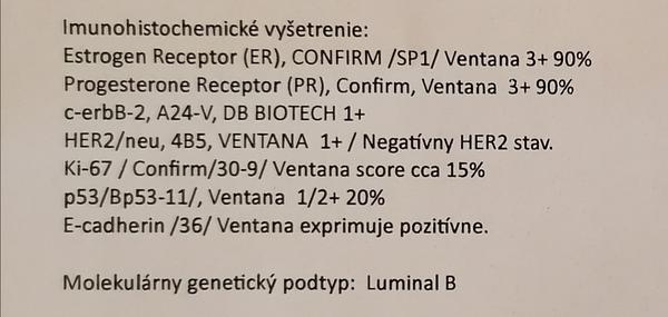 No ak budem mať možnosť sa porozprávať s tou pani čo sme boli spolu a opke ako som včera písala, že nepotrebuje liečbu len hormón.tabletky,tak by som bola zvedavá na tie jej čísla či to sedí,jedine si pamätám, že mala Ki67 pred opkou 10%