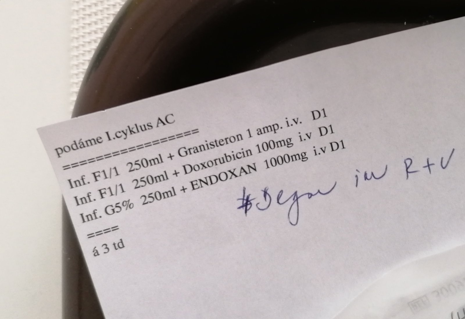 Pred operáciou mi teda onkologička povedala, že aký bude postup, vraj to vyzerá tak že po operácii bude nasledovať chemoterapia, 6 ciklov - 3x FEC - 3x docetaxel, potom liečba ozarivanim