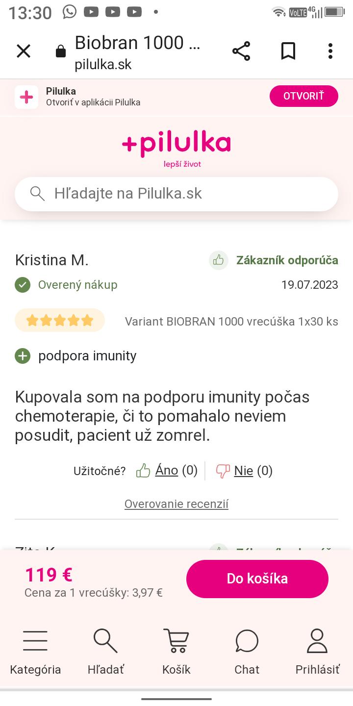 @helga9 čo k tomu dodať? Už len tu super cenu, ktoru pacient platí sám celú - 30 sáčkov 110€ aj viac. A musela som sa zasmiať, pozrela som hodnotenia (inak akože priaznivé), ale prve bolo toto