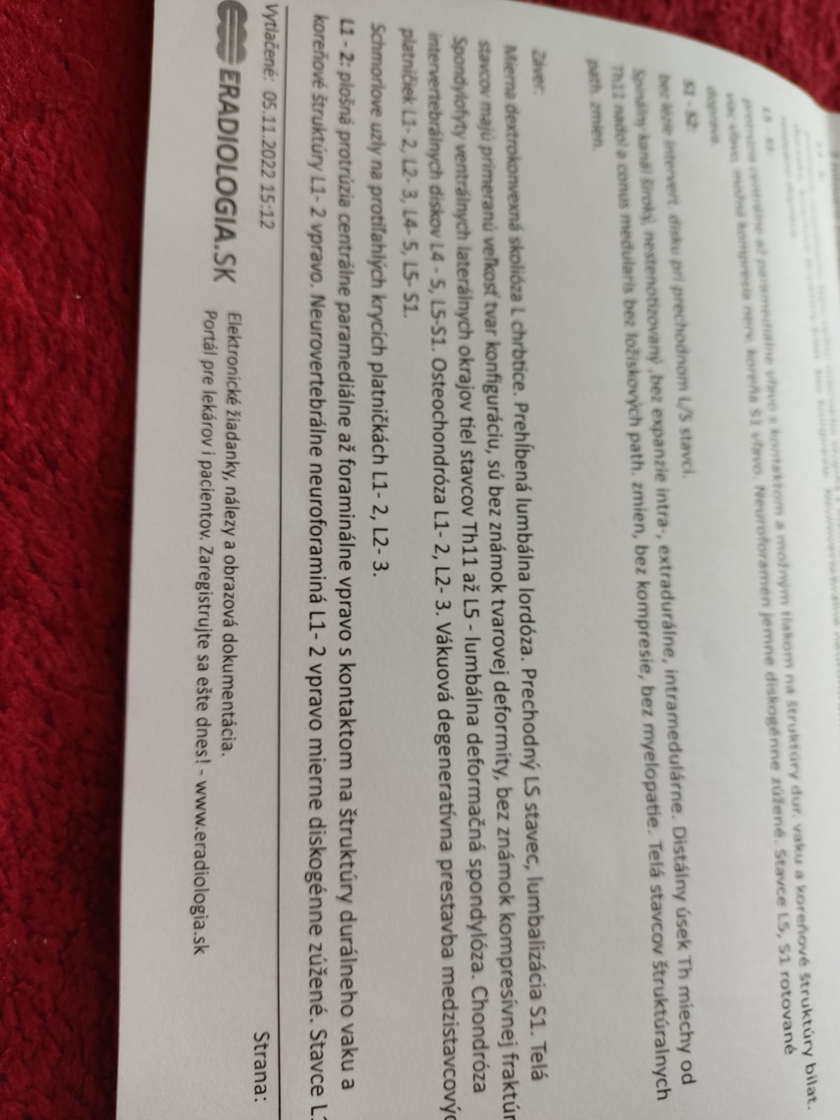 @pupiacik mam krivu chrbticu, schrom. uzly (najdi si to na googli) a vysunutu platnicku s utlakom na miechu to ta asi boli. nepisu ako velmi je vysunuta ale pytala by som sa k neurochirurgovi nech skontroluje snimky a zhodnoti ci je to na operaciu (ak tlacia na miechu cadyo sa operuje, cim dlhsie bude tlacit tym sa hsie budes liecit po operacii - ja som cakala 4r. na operáciu a dalsie 2 som sa davala po operacii dokopy, niekto je za 3 mesiace fit)