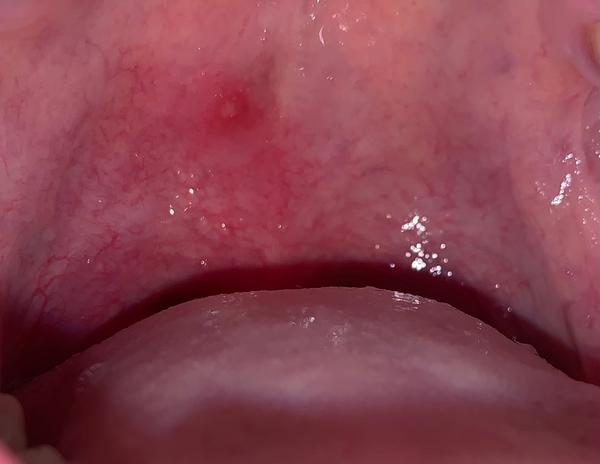 Zdravim už od štvrtka som si objavil na podnebí takýto aft, alebo čo to je, mám od štvrtka aj hnačku. Potieram herbadentom a večer Corsodyl vyplachujem