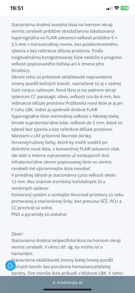 drobne zmeny na MRI uvidia dam ti tu svoj posledny nalez kde uvidis ako sa popisuju