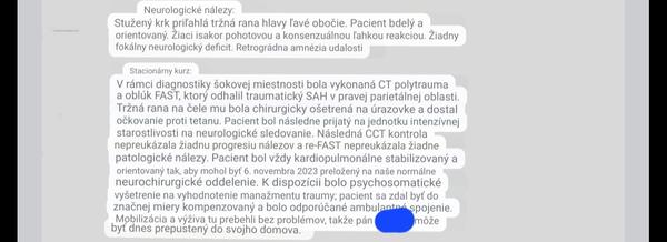 @stellarstar bol na neurologii, ale tam sa dokopy nič nedozvedel, len napísali tiež že nemajú k dispozícii CT RTG ani MR. Chodil k obvodnemu len. Na chirurgii mu vybrali stehy po 2 týždňoch a kontrolu už nedali. Preto nevieme kam ísť aby ho poslali na nejaké vyšetrenia a či je normálne že obvodný ho vypísal do práce.
