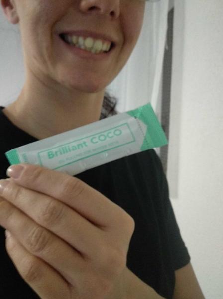 O tejto praktike bielenia zubov som vela toho pocula. Samozrejme boli aj dobre ale aj menej dobre skusenosti napisane a preto som sa rozhodla, ze sama tento produkt vyskusam a tak som si ho objednala. Fotku, ktoru som vam sem pridala je uplne z prveho dna a potom pridam aj po ukonceni kury. Tesim sa uz na vysledok a verim, ze Brilliant COCO mi zubky vybieli. A este posledna vec, ktoru vam napisem je to, ze tento produkt som si vybrala prave preto, lebo ho mozu aj dojciace zeny a ja este kojim.