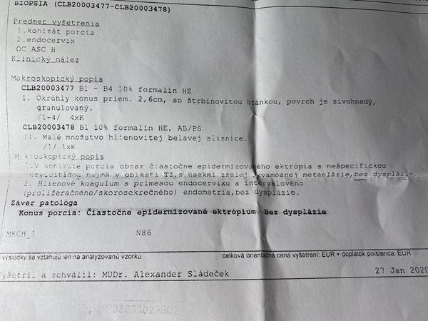 @sulky ale to len mi potvrdzuje ze konizacie sa robia hlavne ako zarobkova cinnost...Tebe to ribili asi kvoli tomy ASC H...mne lekar povedal ze exocervix vie posudit ale nalez asc h na exocervixe nevidi..to su tie metaplazie tak preto robi biopsiu a z tej mi tiez nic nevyslo, ale ja som uz potom mala na dalsej biopsii aj hsil na exocervixe, takze endo uz asi neriesil...