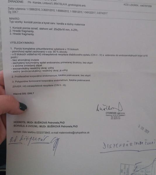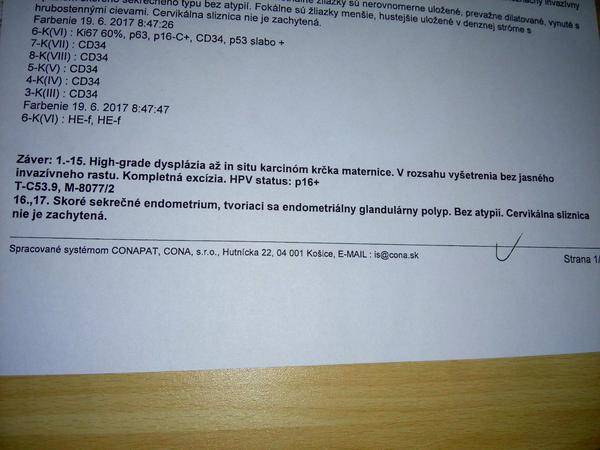 Bola si na prvej kontrole až za pol roka?? to aj mne tak dr povedal,ale zdá sa mi to čudné,prečo až tak neskoro??Kamoške pri tejto diagnoze dokonca brali aj krv na onkomery atd a mne nič ☹ A že som mala lepšie výsledky ako ty? nemala,ved pozri nejaké 3 strany diskusie,kde píšem aj ja ,to je cca od Júna 2017 a tam som všetko písala-po konizácii mi z histologie vyšiel tiež carcinom in situ ☹ nikdy predtým mi nič nebolo,len som chodila na preventívne,až min. rok v lete na cyto LSIL(PAP 3a) a o pár mesiacov sa už rodila táto pliaga,ale pritom platená cyto ukazovala len na PAP 3 ab ☹