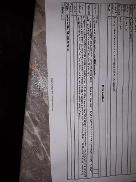@jarmila1955 A taktiez som nikdy nemala zhorsene cyto ani ziadne problemy, poctivo som bola kazdy.rok na preventivke a 2 roky predtym som mala lbc. vsetko bolo ok, nebola som v tom obdobi chora, ziaden stres, cvicila som, a zrazu bum karcinom. Lekar mi vravel ze je vela takychto pripadov dolezite ze sa to zachytilo vcas. Takze.ani sa netrap preco atd. Je super ze.ti to zistili v skorom stadiu.