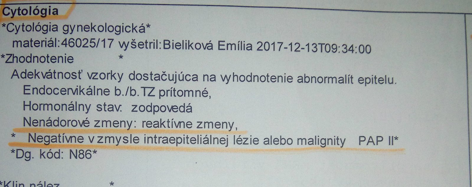 Nevidela som ho prečo? Ale doktor mi povedal že výsledok ok ale že tam vyšla nejaká zmiešaná bakteriálna infekcia už neviem presne že zápal zrejme
