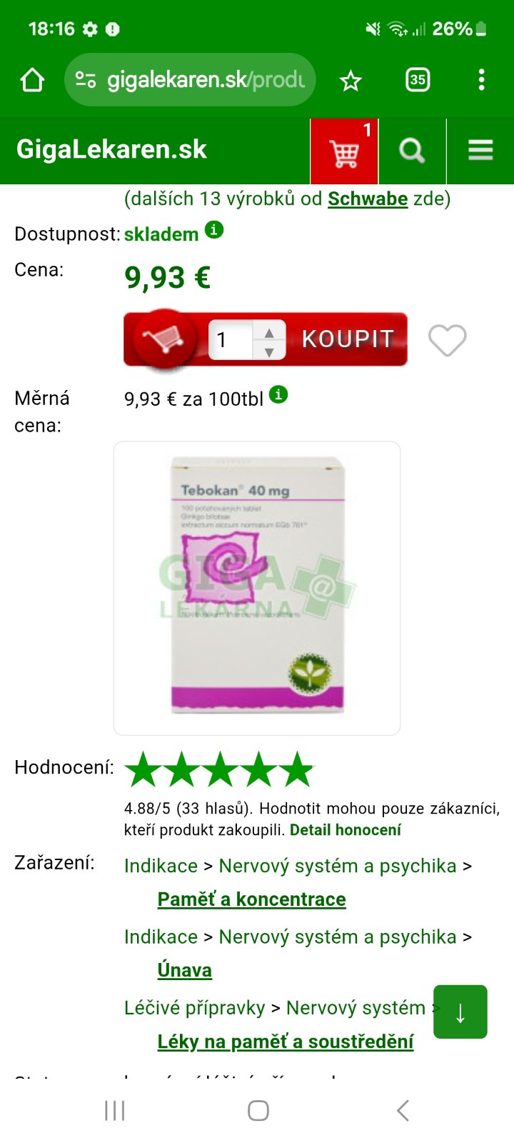 V ceskej lekarni Gigalekarna mas bez predpisu taky, co je u nas na predpis. Posielaju aj na SK