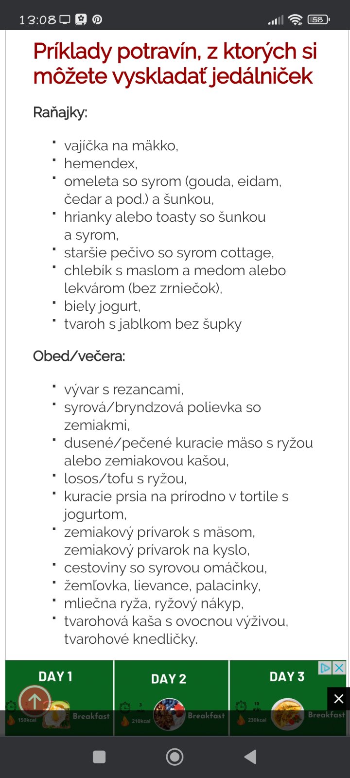 skratka nejedz celozrne potraviny, ovsene vlocky, vynechaj orechy, zeleninu a ovocie bez supky a kostok, masko len podusene, nie peceny bocik a klobasu napriklad.