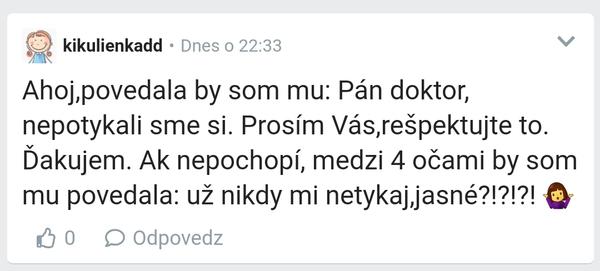 Inak môj muž mal takého doktora na rehabkach, že ten zásadne chlapom tykal. Môj muž sa na tom smial, doma mi storky o tom rozprával, ale to je iná situácia aj z pohľadu, že ty si žena.