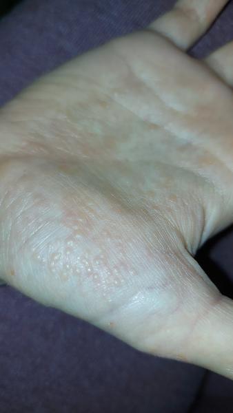 Takto sa jej to rozdielo po celých dlaniach. A jediná tá pasta to pekne zosušila. Vyhodilo sa jej akurát cez sviatky na Vianoce. Kým začala kožná robiť po Novom roku už sa aj hojilo.