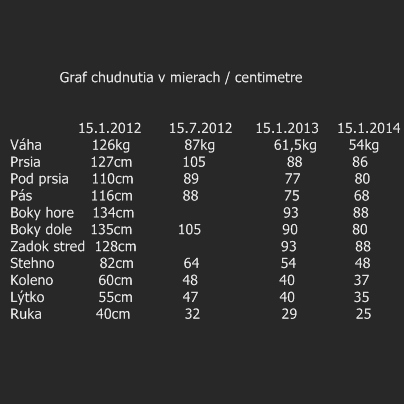 - prikladám moje čísla , chudnutie sa zastavilo a váha ustálila po roku a pol - a to už bolo aj na čase 🙂