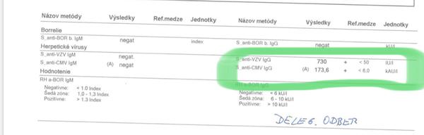 @panelacikova ano, viem, ze IgM je akutna infekcia a IgG prekonana...CMV je cytomegalovirus a a VZV netusim aky herpeticky virus. Len chcem vediet, ci to mam riesit alebo to pocka, kym budem mat cas ist na kozne. A boreliozu ak som aj mala, asi dokonale znicil ten doxyhexal.