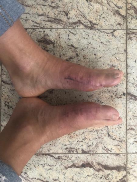 @ewita88 správne tak. Musíte cvičiť od druhého dňa. Ale 6 týždňov musíte mat obväz aký bude správne držať prsty. Aj samozrejme špeciálne topánky. Obväz robím sama veľmi rýchlo. Keď niekto potrebuje, tak natočím. Neponáhľate sa hodiť do 6 týždňov. V Barukah behám ako koza))) Takto teraz vyzerajú moji nohy.