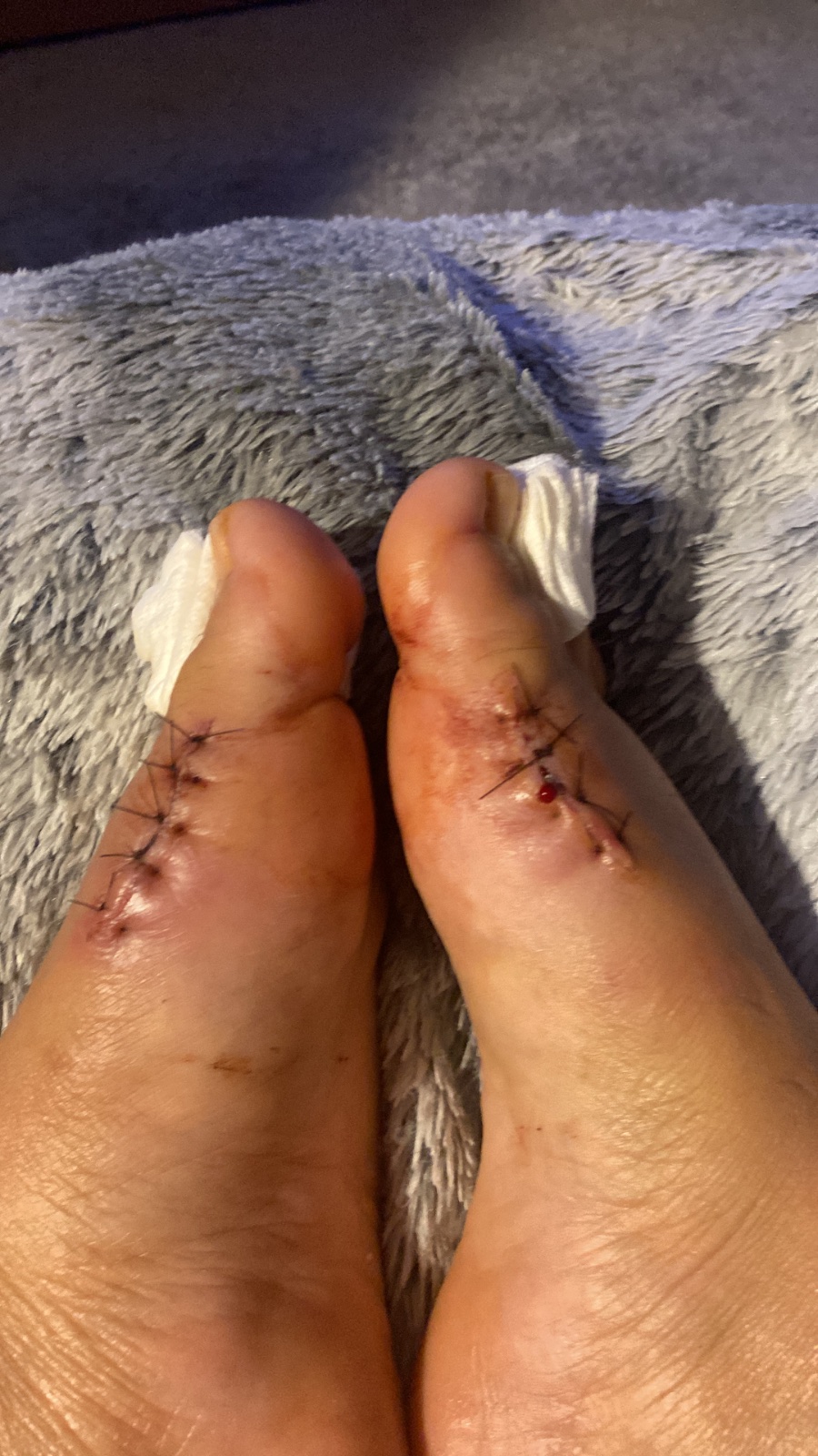 @adrianadeutschova predtým,medzi a potom.Fotky sú neni zoradené podľa poradia, ale asi sami vyhodnotíte…😉🤭bolest od zaciatku takmer žiadna.Operovana som bola obidve nohy do hodiny v narkoze.V utorok mám poslednú kontrolu a dáme termin na vybratie 🔩