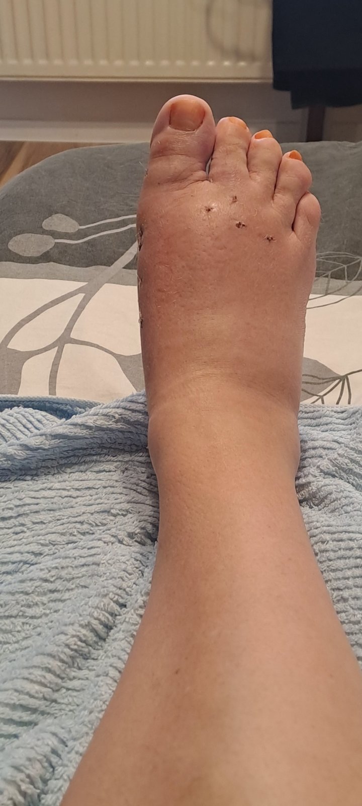 @vieramikloskova na opuch je dobrý vitamín C a mne pomohlo mačat si nohu v slanej vode aspoň 20-30 minút každý večer...a brala som aj serapeptazu