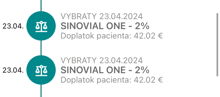 @katarinka289 jedno koleno cca 42€. Klasicka ortopedicka nemocnica, ved preto to figuruje v appke poistovne. . Lekar vypise recept, vyberies v lekarni, s injekciami ides naspat k bemu a pichne. Sinovial je, pokial viem, najlacnejsi. Co pichali tebe? Mne pichaju roky a kedysi stala jedna cez 80€, teraz uz poistovna daco prispieva.
