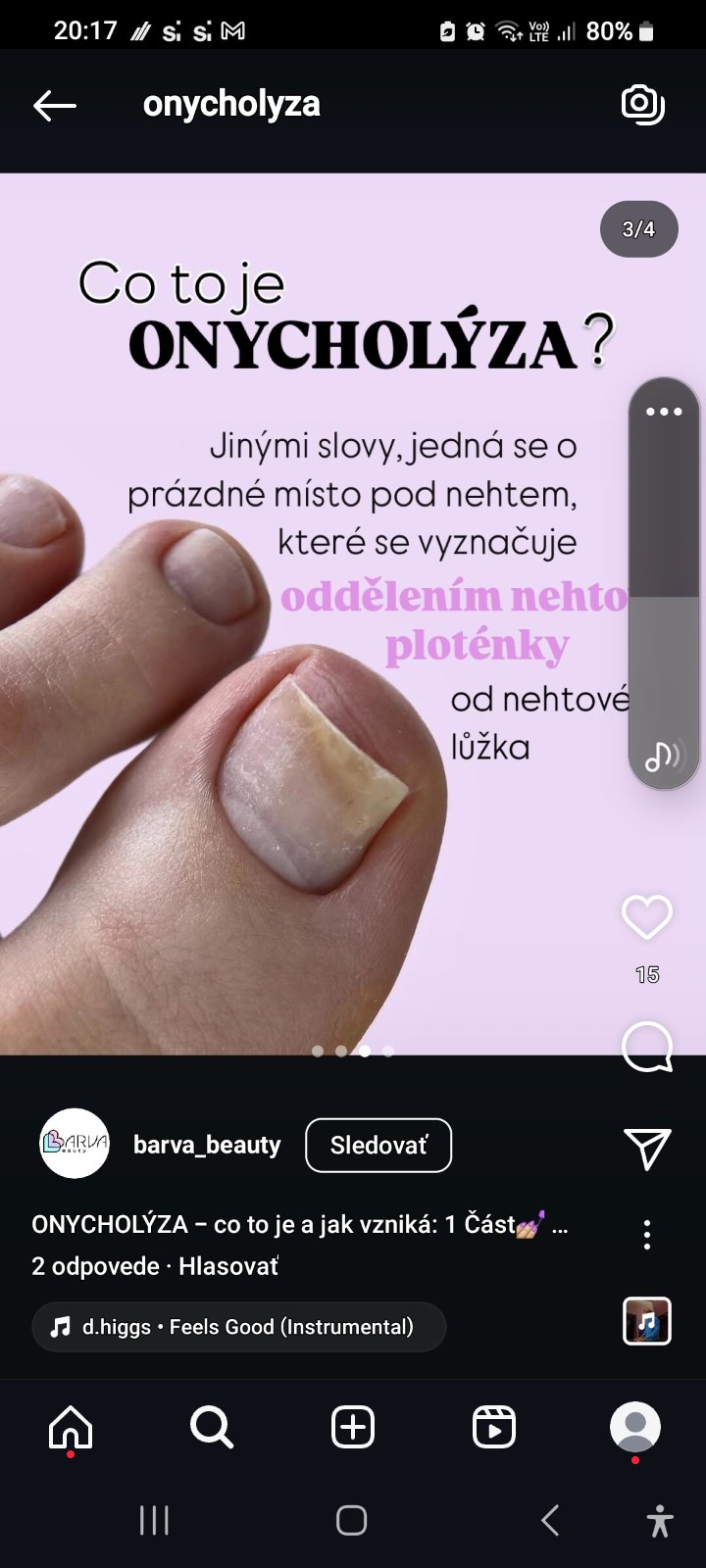 Diagnóza je onycholýza čiže odlúčenie nechtovej platničky. Ak to nebudeš takto riešiť tak hrozí že sa ti tam bude držať vlhkosť a vznikne pleseň.