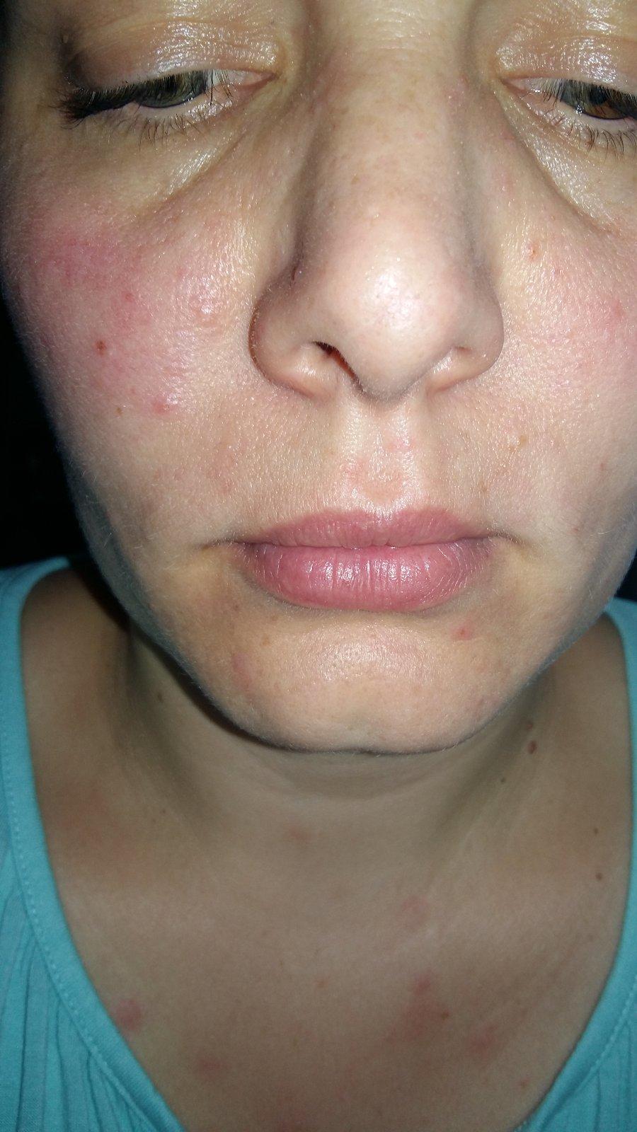 Ahojte baby. Mne dnes tiež kožná diagnostikovala začínajúcu rosaceu. Už pár mesiacov som síce tušila že je to ono lebo to má aj ocino. Začala som používať biodermu. Krém zabral no možno na dva týždne a potom nič moc. Doktorka mi dala ešte rôzne vzorky krémov nech skúsim lebo každému zaberá niečo iné. Ked nepomôžu tak mi dá vraj Rozex. Teraz to mám takto. Dajte foto aj vy baby nech porovnáme