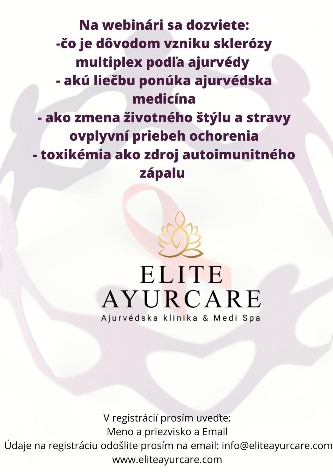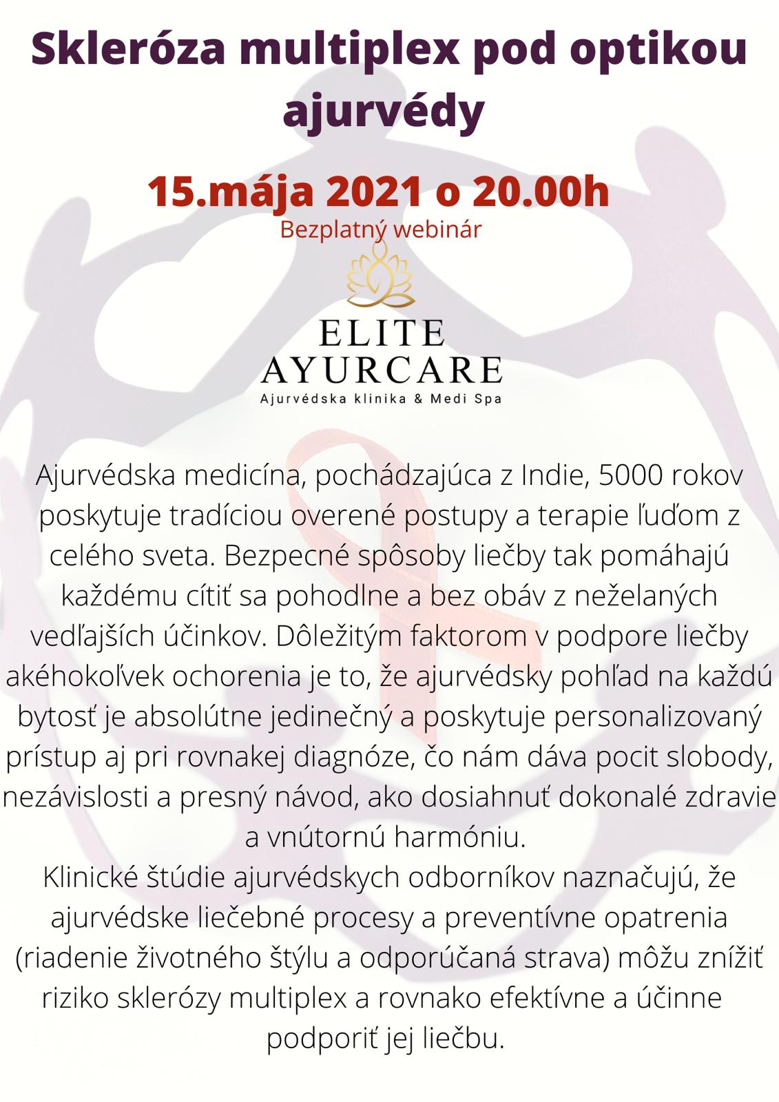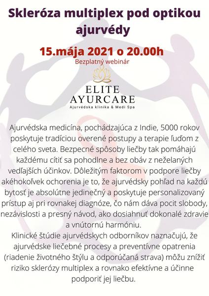 Ahojte, viem, že každý z nás rieši SM tak, aby sa cítil čo najlepšie a využívate k tomu rôzne spôsoby, či už úpravu stravy, meditácie, lieky atď. Ja okrem klasickej liečby tejto diagnózy využívam aj iné spôsoby ako byť v pohode a cítiť sa dobre. Preto by som Vám chcela ponúknuť bezplatný webinár s mojou ajurvédskou doktorkou, ktorá mi veľmi pomohla keď som to najviac potrebovala a na ajurvédskej liečbe som dodnes. Študovala ajurvédu priamo v Indii a na Slovensku pôsobí v tejto oblasti. Ak by ste mali záujem, kľudne mi napíšte či už do správy, alebo priamo sem čo by vás zaujímalo, prípadne aké témy by ste chceli riešiť. Určite sa na tomto webinári dozviete aká je príčina vzniku SM a ako sa dá liečiť z pohľadu ajurvédy.