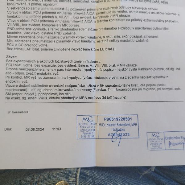 @123martin ahoj. No bola som u neurlogičky a bola totálne odmerana a arogantná. Odpalkovala má s tým že ona tam nič nevidí a nemá mi ako pomôcť a keď chcem aby mi zistili čo mi je mám ísť do nemocnice ležať ,že tam sa mi môžu venovať 🤦🏻♀️ Pýtam sa jej,že takže to nie je SM a ona že pri SM neboli hlava 🤦🏻♀️🤦🏻♀️ pozerám na ňu že "a s čoho mám bolesti?" a ona ,že "ake bolesti veď ste prišla že vám len tŕpne tvár." Tak som ju opravila čo všetko má bolí a iba dodala,že neznáša takýto záver MRI keď to nespecifikujú. Dala mi papier do ruky ,že dovidenia aj tak to bude tetania a zabuchla.Tak hľadám teraz nemocnicu na príjem . Idem vyskúšať Nitru.