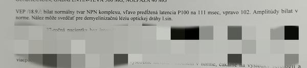 @123martin ahojte. Dnes má púšťajú domov, mám ísť na magnetickú v pondelok a potom až 16.10. do SM centra kde povedia výsledky. VEP test mi vyšiel takto