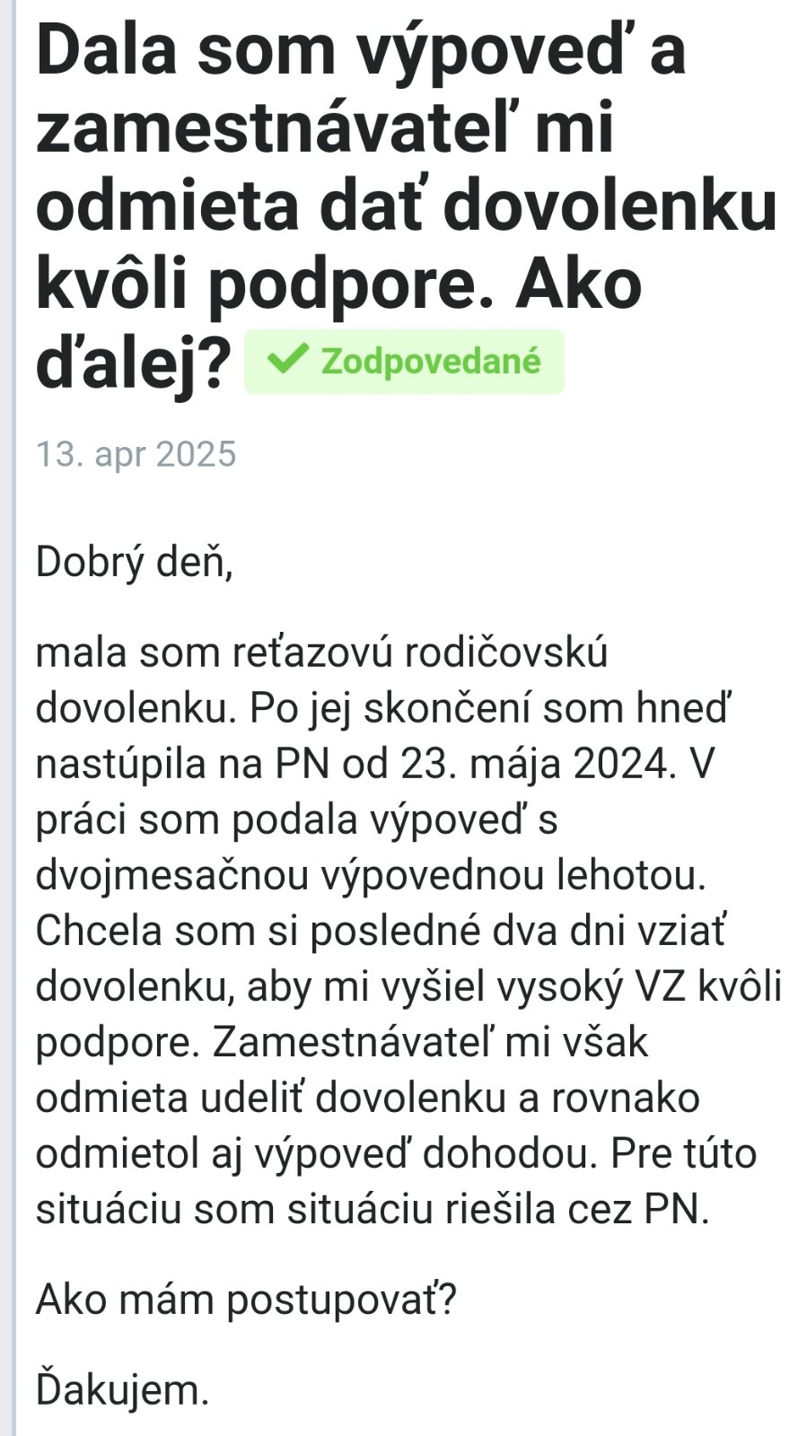 @0silvia0 hej chapem to nebolo v zlom, ja tiez nechapem ako niekto ide na par mesiacov na PN len tak bez vazneho dovodu to v tej praci nechyba? Musia za neho ini robit