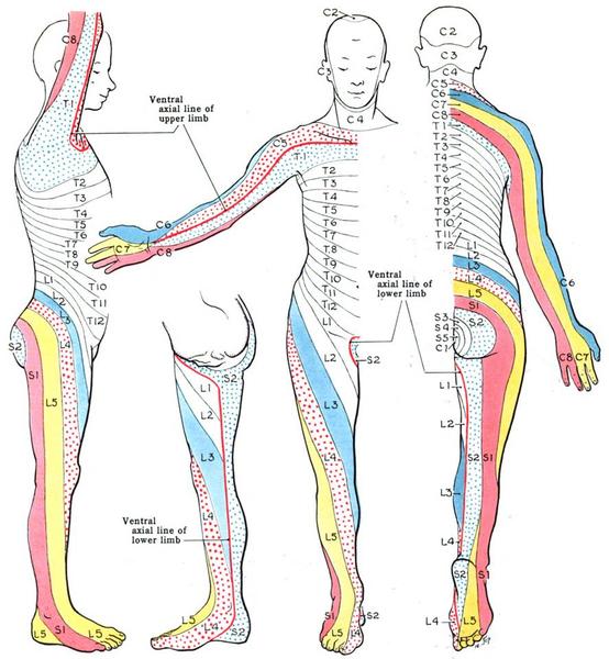 Bolesti ktore popisujes mozu a vysokopravdepodobne pochadzaju od problemov s chrbticou. Pre nazornu ukazku prikladam jeden obrazok z netu, ktory demonstruje, kam zvycajne bolest od chrbtice vyraza. Tym mozes aspon priblizne identifikovat o ktore stavce sa jedna.