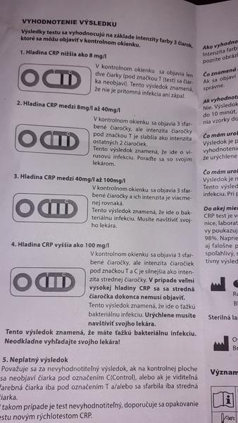 Máte skúsenosti s vysokými hodnotami crp....ako mne bol zistený zlatý stafylokok..užívam antibiotika. CRp mam dlhodobo zvýšené...hodnota už bola aj 26...ale teraz som si robila samotest na crp hodnotu...a tam bum...vyzerá to podľa čiarok že je to nad 100...pojd zajtra k doktorke nech mi ona spraví crp...ale aj tak...raz mi hematologicka povedala ze crp mam zvýšené z obezity, stukovatelej pecene..a uzkostnou poruchou...aký máte názor vy...