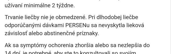 @dominicka28 nerozumiem celkom tej zbytocnej emocionalnej naloze okolo toho a potreby argumentovat ad hominem (?) na zakladnu logicku konzistentnost tvrdeni netreba mat sestru, co studovala farmaciu 🙂 ale teda dobre, v persene je podla teba nejaka zahadna nedeklarovana latka okrem valeriany, medovky a maty, ktora sposobuje ze je navykovy a nevie o tom ani SUKL, ktory tento liek teda asi mylne klasifikoval ako volnopredajny.