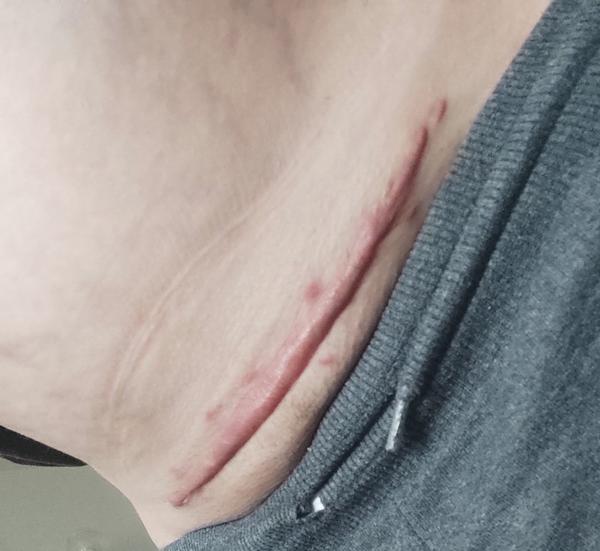 Neriskovala by som asi operačné riešenie, pretože je pravdepodobné, že ďalší rez sa bude hojiť rovnakým spôsobom.