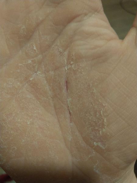 Moje ruky, s ktorymi bojujem uz 3 roky a nic nepomaha. Presla som vsetky mozne lekarske maste, doktorku, krvne testy v poriadku, alergologicke testy v poriadku, histologia v poriadku. Dietna strava na to nezabera. Spavala som v rukavickach s dechtom nezabralo, kortikoidy iba na 2-3 tyzdne a potom opat, kupele nic.Iste obdobie mi najviac pomohol obycajny kokosovy olej, s ktorym som si to potierala.Ale po 3 mesiacoch sa to opat vratilo. Uz som sa s tym zmierila... Hrozne to svrbi, neda sa to ovladnut, musim si to skrabat,lebo to je na nevydrzanie. Potom sa mi z toho doslova trha koza a boli to jak fras. Raz za cas to ustupi,ale potom sa to aj tak vrati. Uz neviem co s tym a rezignovala som. Okolie neriesim. Nech si kazdy mysli co chce, ja nza to nemozem a nie je to nakazlive. Ak mi nechcu podat ruku je to ich problem... Ale tym nechcem povedat, ze mi to je prijemne ak to vidia ludia :/