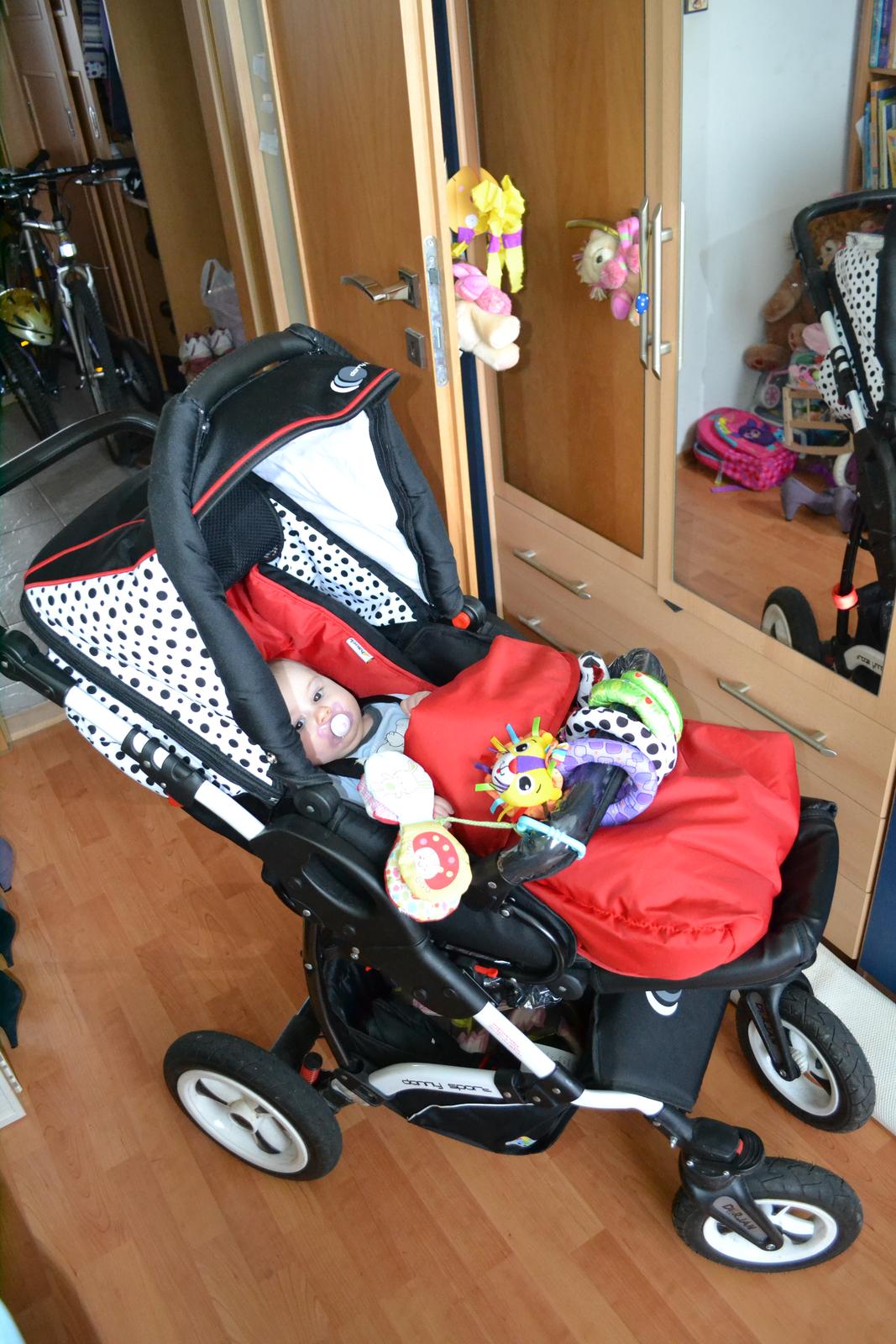 Ja mám Dorjan Dany Sport Line 2013 trojkombináciu aj so sedačkou, malá sa narodila v októbri. Vanička je priestranná, kočík sa veľmi dobre ovláda, jednotlivé časti sa pekne zaklikávajú - mám ho bodkovaný a som maximálne spokojná, pomer kvality a peňazí - super, už sa teším, keď pôjdeme aj do športovej časti, je tam aj dosť hrubý nánožník. Malej sa vo vaničke zatiaľ veľmi dobre spinká, za týždeň máme 4 mesiace a krásne sa do nej zmestíme aj keď dáme fusak, deku a ona je v hrubom overali.