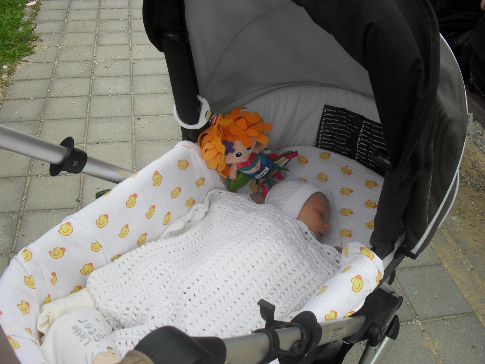 tak ještě nějaká kočárová fota 🙂... místo plínky jsem tam teď vymyslela barevný šátek, tak zas kočár vypadá trochu jinak... na dno kočárku na matraci jsem dala vložku I´coo do kočárku, z jedné strany letní, z druhé zimní, měla jsem ji na golfky a do korbičky pěkně pasuje 🙂, malá to tam tak bude mít ještě měkčí 🙂