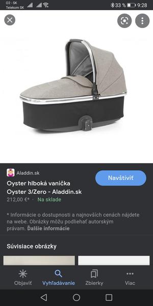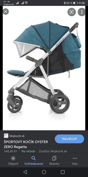 Vanička 'patrí' na iný oyster zero ale dajú sa dokúpiť adaptéry a krasne naň zapadne. Vidieť aj na foto striešku aká je veľká, dieťa leží nie je v pololahu a keď je väčšie a sedí ma miesto kam si položí nožičky, nemá ich zbytočne skrčené alebo voľne padnuté. Je širší takže väčšie dieťa aj vo fusaku sa zmestí a nemá zúžený priestor. Ľahký, spratny, a okrem striešky vieš dať celý poťah dole a oprat ho. A tiež ak chceš dať vaničku, nemusíš nechávať športový poťah na kočíku. Dáš ho dole a funguješ. Čo sa týka nákupu s igelitkou. Jediná nevýhoda aspoň pre mňa, že košík je v ľahu menej dostupný. A aj ked dieťa sedí, ťažko natlačim bežnú igelitku s nákupom. Spotená som už, keď sa len rozhodnem ísť urobiť nákup. Ona sa tam zmesti dokonca za ňu dam ešte ďalšiu menšiu tašku ale dostať ju dnu alebo von 🙈