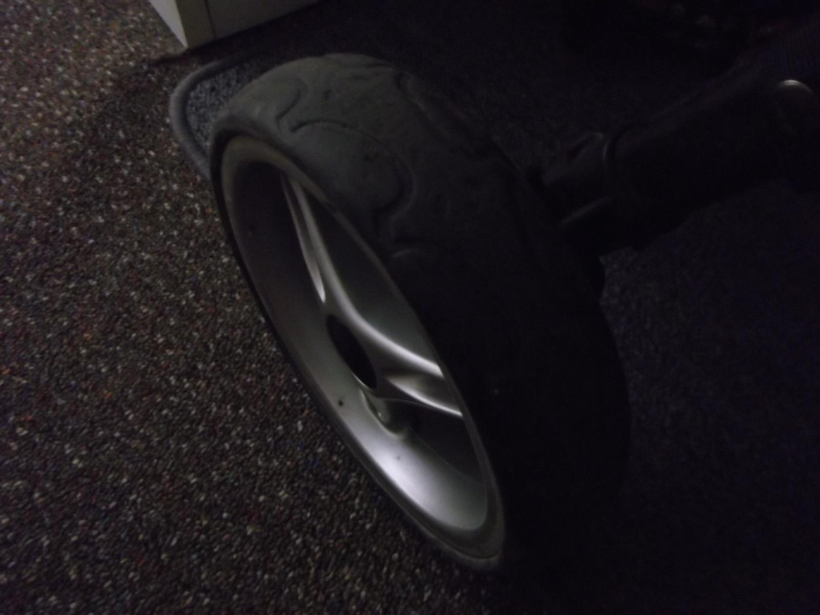Takze pridavam fotky kolies. Kocik mam na chodbe kde je riadna tma a sorry za tie spinave kolesa....Pridavam jednu fotku bez blesku a druhu s bleskom. Na fotke bez blesku je pekne vidiet dezen, druha je seda, co nezodpoveda realnemu stavu. V skutocnosti kolesa take sede vobec nie su.