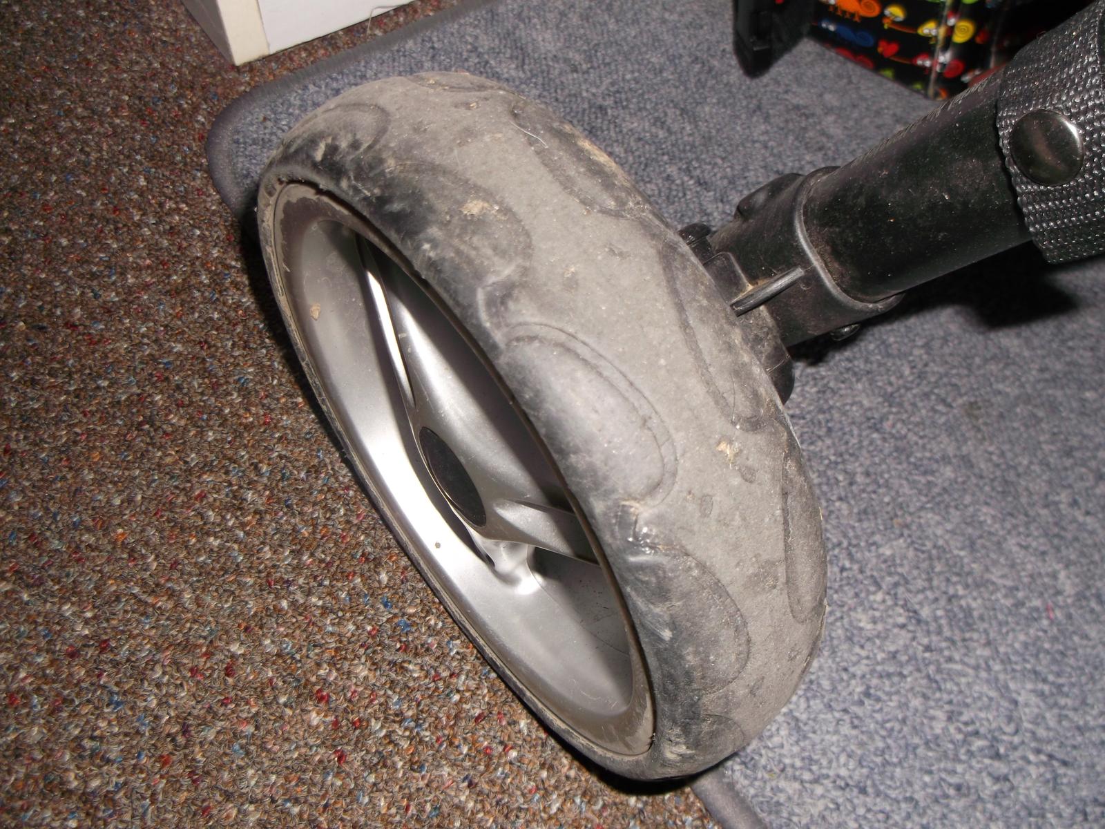 @katrenka111 chodime s nim do lesa, po kamenoch, po piesku ...vsade. A nemam s nim problem...Neviem ti to popisat, nie su cierne, su jemne sede... 😒 Ten stred ktory jazdi po zemi.