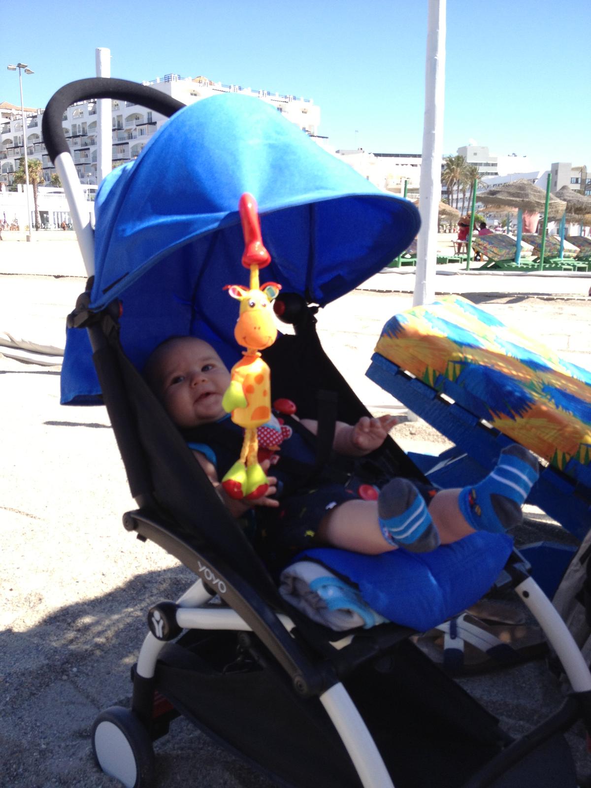 My sme boli vlani so 4 a pol mesacnym dietatom na dovolenke v Spanielsku a prave kvoli dovolenke sme ho kupili.Velmi sa nam osvedcil a boli sme na roznych terenoch!°!!. Kedze este nemal 6 mesiacov, tak som kocik vylepsila tym, ze som farebnu cast pod sedakom odopla a podlozila zrolovanu tenku deku a znovu pripla. Tym sa sedacia cast pod nozickami zdvihla a maly mohol spravne lezat ako ma v jeho veku. A kedze sme mali so sebou aj vajicko,dali sme ho opacne na kocik a moholi sme ho az do nastupu do lietadla aj vozit, co bolo sikovne lebo bol velmi tazky spolu s vajickom. Zaroven pri kupe kocika som si kupila aj velmi sikovny nie hruby fusak, ktory aj v Londyne pouzijes na prechodne obdobie. Bolo to v marci a zaroven som si objednala aj Slnecnik a drziah na flasu, ktore vsak stale urgujem a neviem zohnat. Yoyo uzivame stale a normalny sportovy kocik stoji