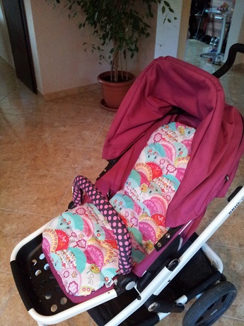 Boudičku k hluboké korbě mám taky, ale přiznám se, že ta se mi na tom moc nelíbí a moc dobře tam teda nesedí, takže ji dávat nebudu. Látka, matroš - mno něco nepromokavýho, víc asi nepovím 😀 a je to od Moniky....sporťák mám blbě navlečený a ne a ne to navlíknout, aby se to neprohýbalo, už nevím, co s tím 😒 budu muset zkoušet...