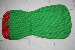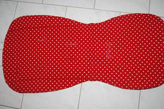 podložka je dlha ako sedacia časť, dole ma dokonca taky lem, aby ta druha strana nevytrčala, hore su gumky na uchytenie pod budičkou