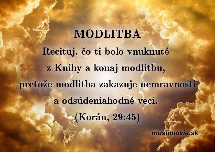 Ak by niekto hľadal texty modlitieb v islame, spôsob očisty pred modlitbou alebo mal iné otázky týkajúce sa modlitby, môže využiť link: https://muslimovia.sk/o-islame/piliere-islamu/m..., kde nájde: jej podmienky, očistu, postoj, slová modlitby ale i výnimky z tejto povinnosti.
